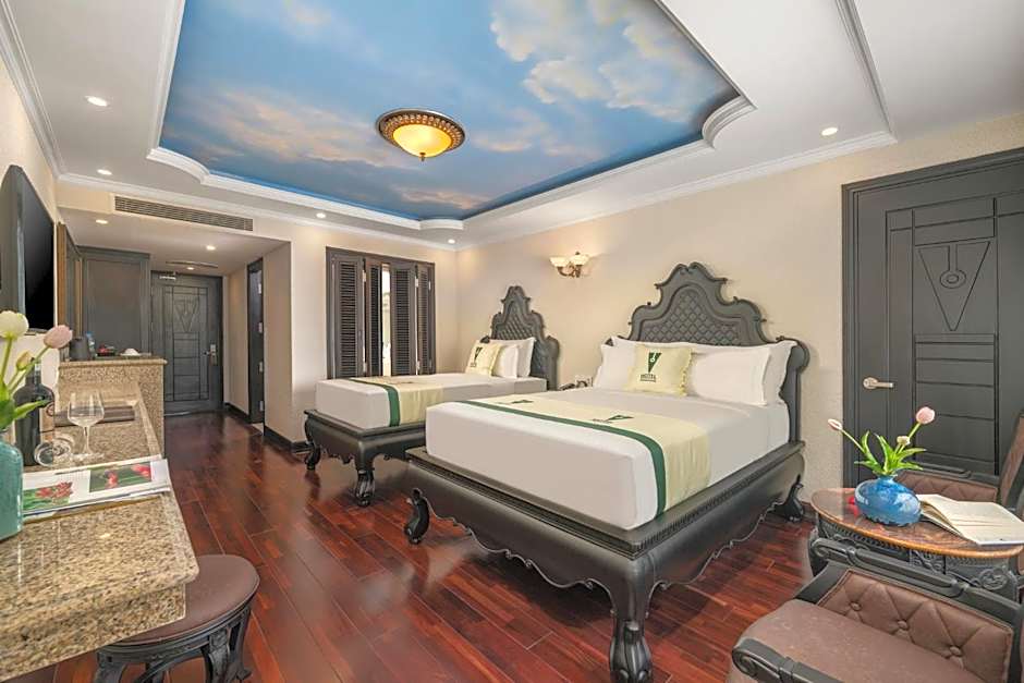 Providing free toiletries and bathrobes, this twin room includes a private bathroom with a walk-in shower, a bath and a bidet. The spacious air-conditioned twin room provides a flat-screen TV with satellite channels, a mini-bar, a wardrobe, a safe deposit box as well as city views. The unit offers 2 beds.