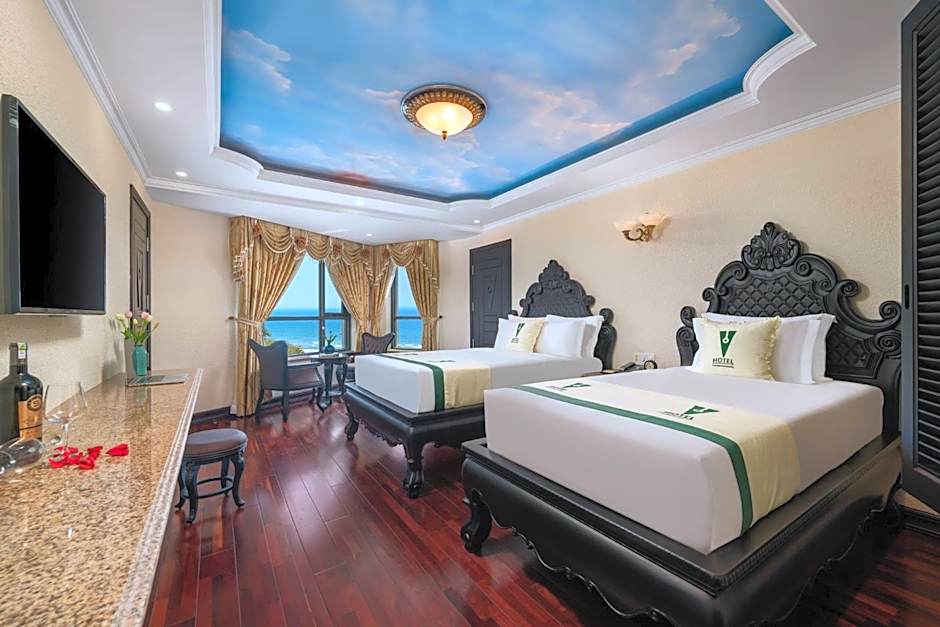 Featuring free toiletries and bathrobes, this twin room includes a private bathroom with a walk-in shower, a bath and a bidet. The spacious air-conditioned twin room features a flat-screen TV with satellite channels, a mini-bar, a wardrobe, a safe deposit box as well as sea views. The unit has 2 beds.
